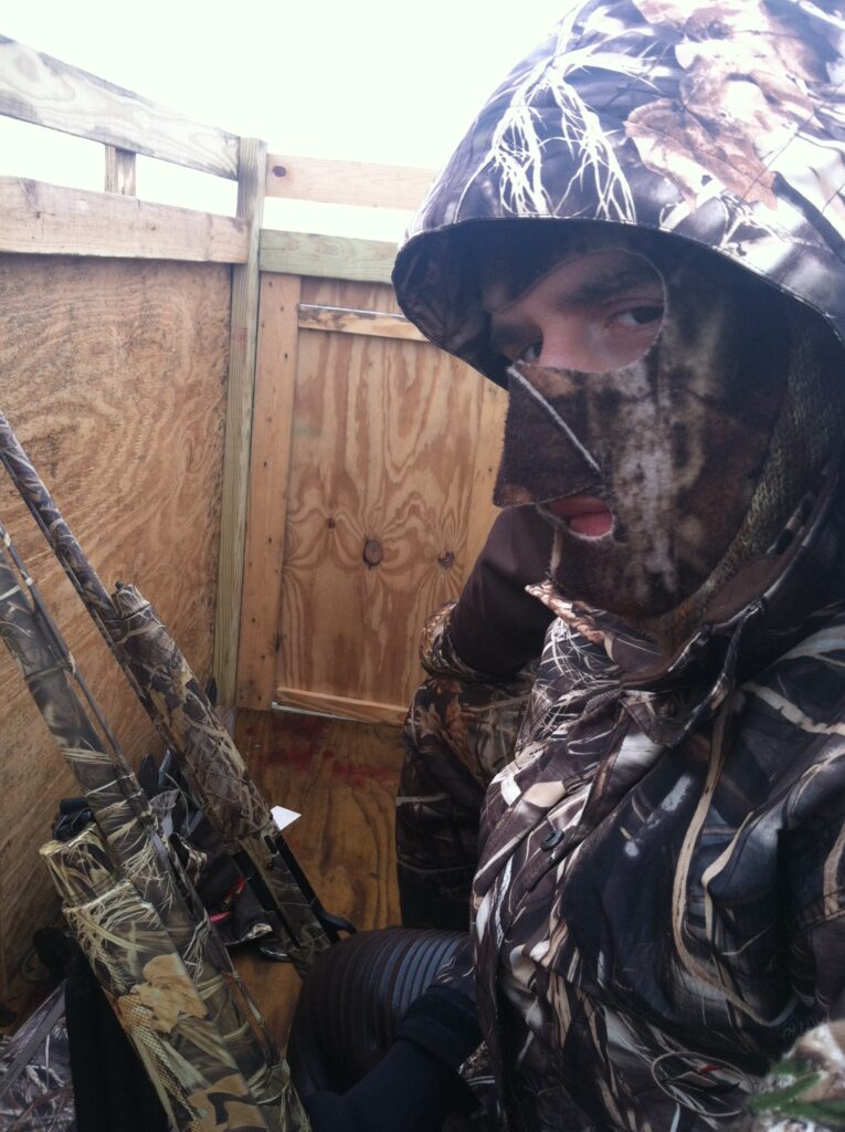 You don’t talk loud in a duck blind.